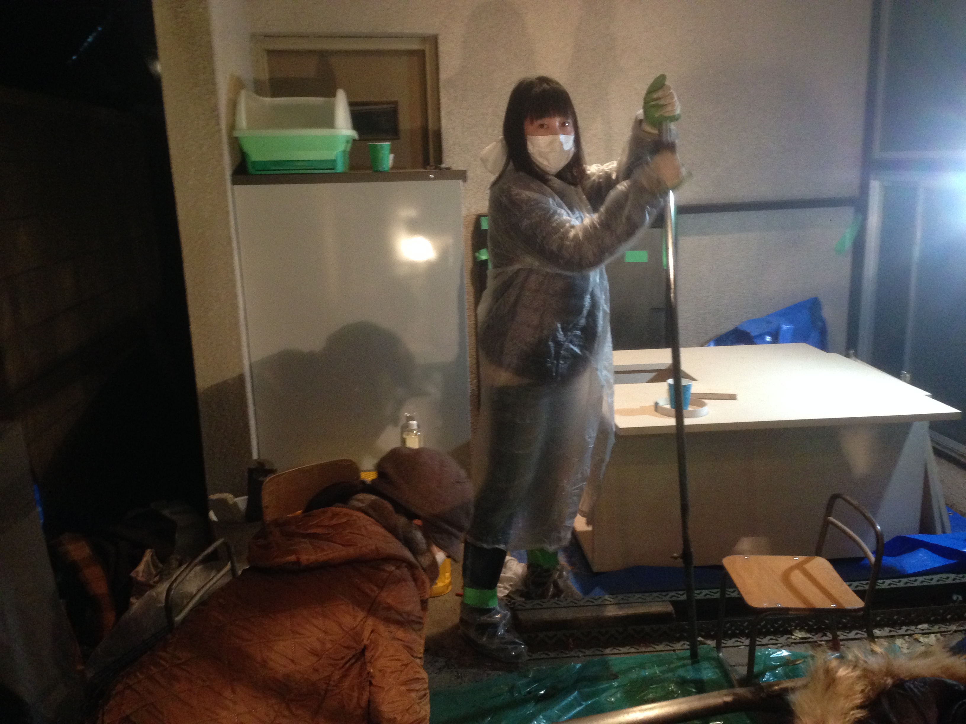 午後1時、引っ繰り返しての塗りスタートです。平林さん、阪田さんと3人で塗りました!