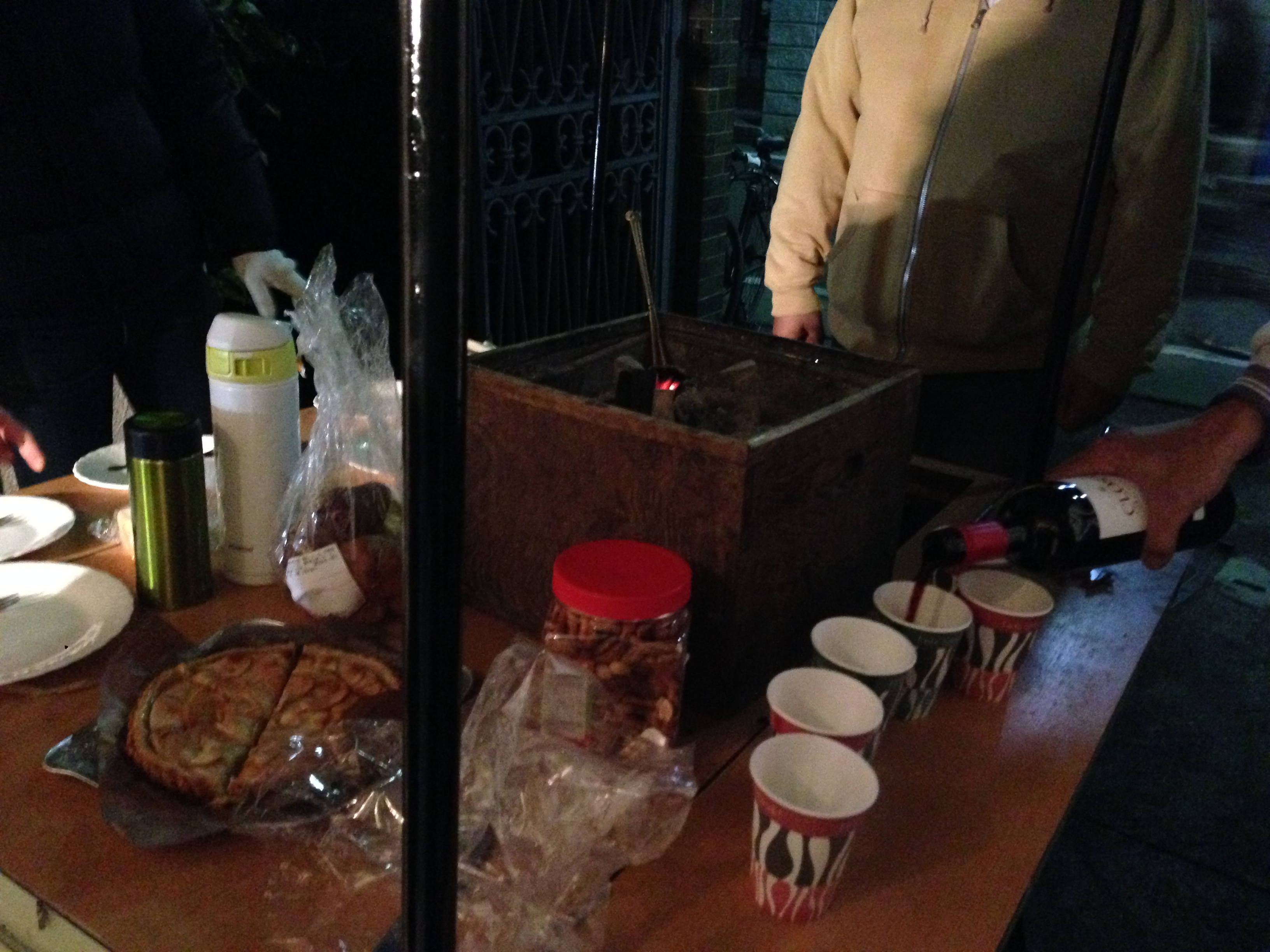 じっとしてるとやはり寒いので火鉢を、そして中田さんから赤い飲み物が〜!