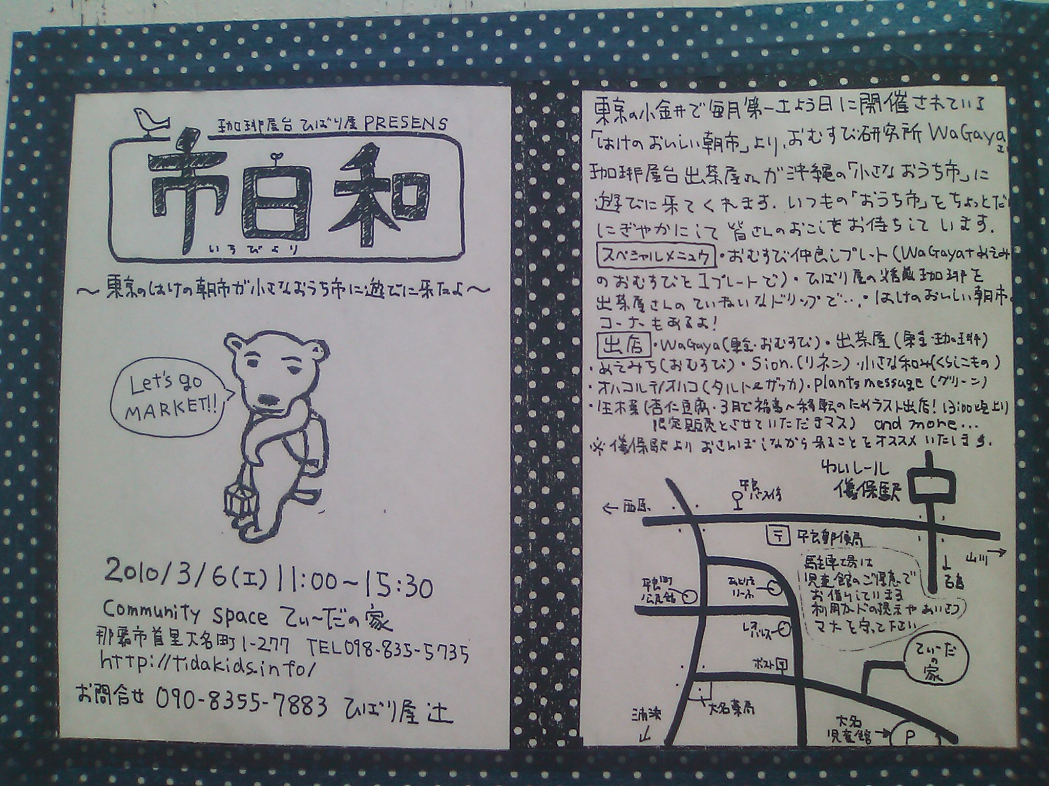 Wa Gayaのあやちゃんと沖縄行く!っときゃいきゃい決めて、ひばり屋のさっちゃんが「市日和」を企画してくださいました。
