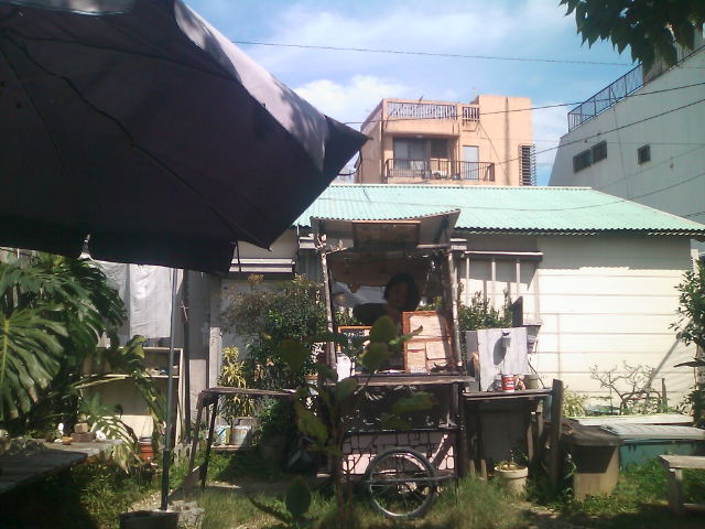 この間、ふと気がつくと屋台にかまきりが。すごい勢いでよじ登っていって、いつのまにか、どこかにいなくなっていた。ここまで大きくなれば、もう立派な大人になれるかな。