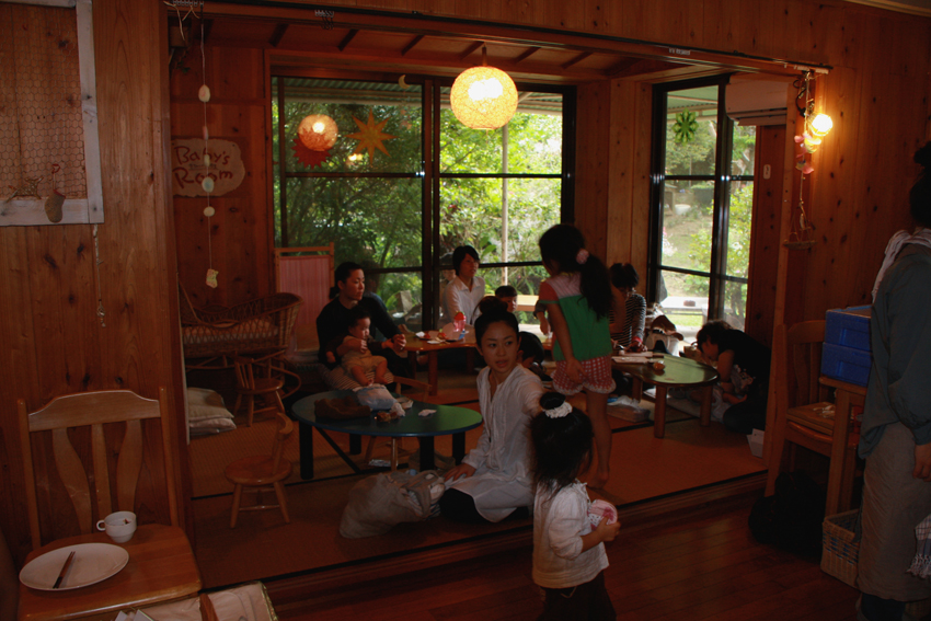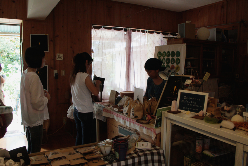 リビングには、とってもかわいくておいしいタルトの“オハコルテ”さん、リネン雑貨や器の“小さな和み”さん。リネン服の“sion”さん。“はけのおいしい朝市”コーナー。