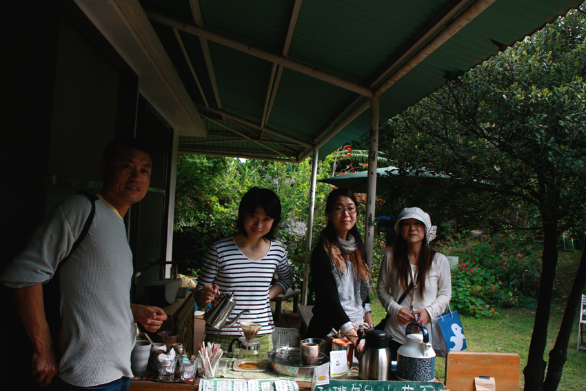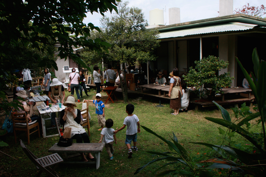 市日和は16時に無事終了。片付けの後は、みんなで宜野湾のカフェ“オウチ”へ。