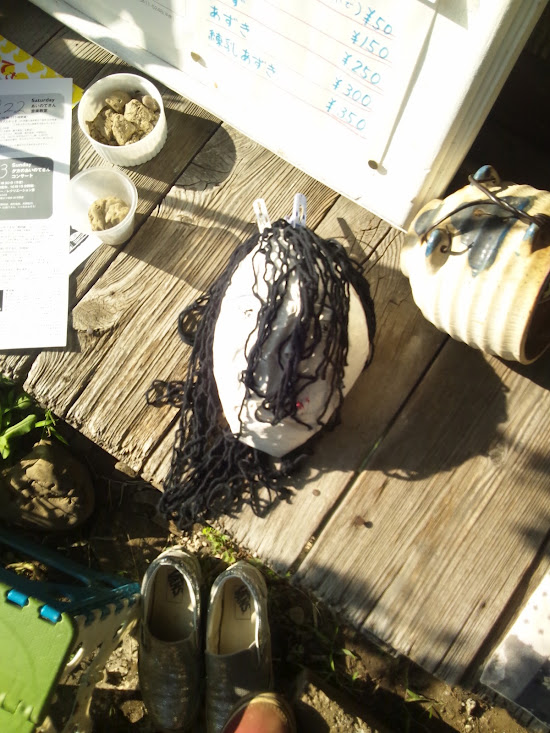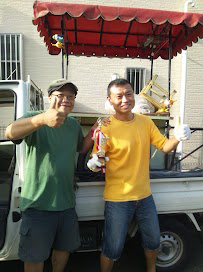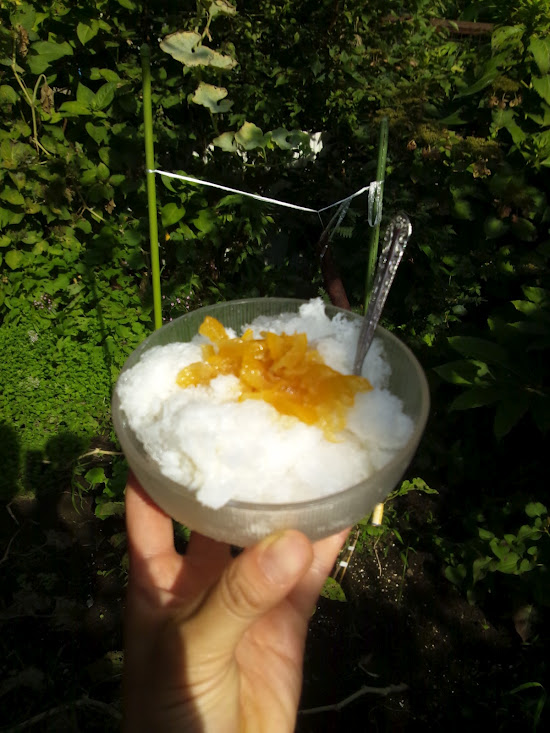 こないだ、雨上がりの朝に平林さんちへ置かせてもらっていた屋台を取りに行ったら、屋根に氷が張ってました。