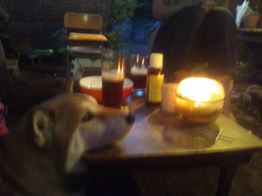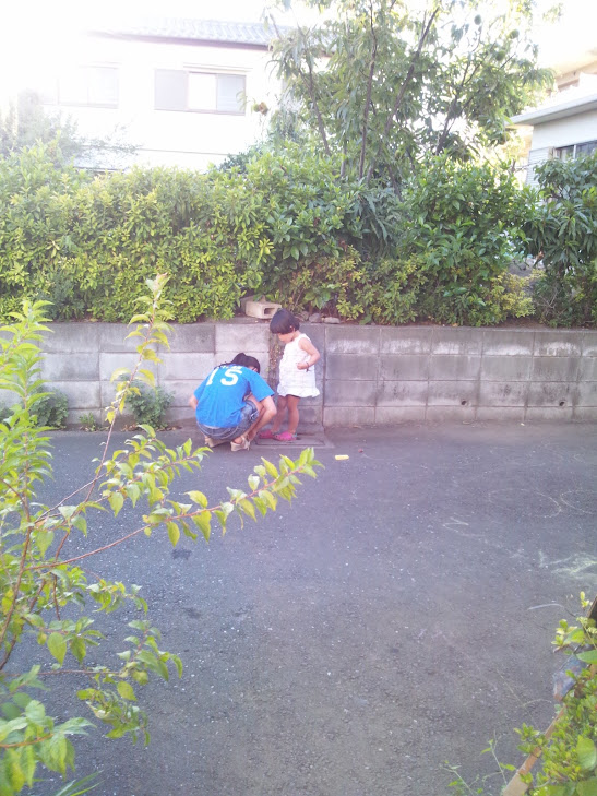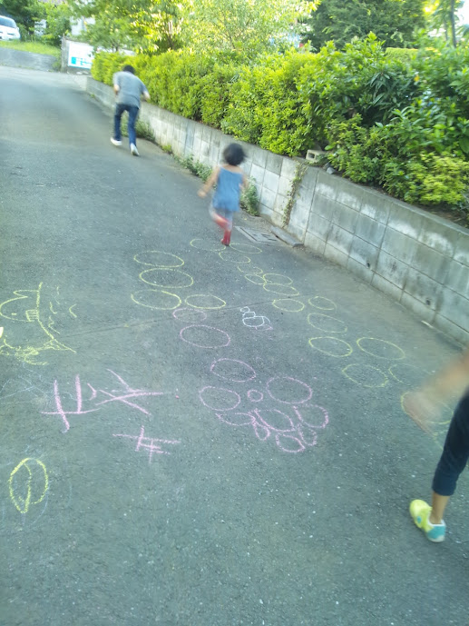 寝転んだ! dogdecoさんの夕暮れ。路地で遊ぶ林くんと青ちゃんとJくん。本気で楽しそうでいい!