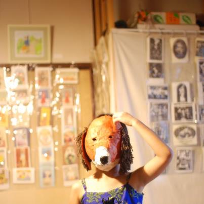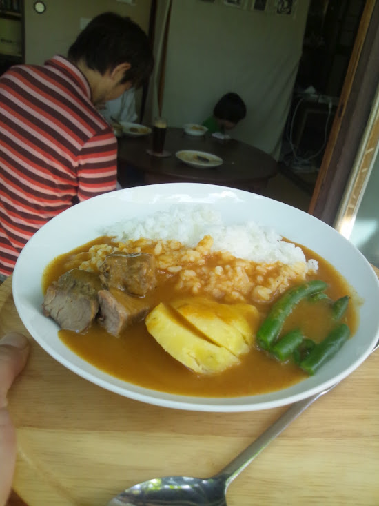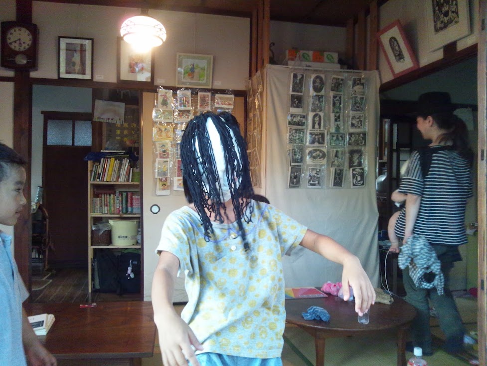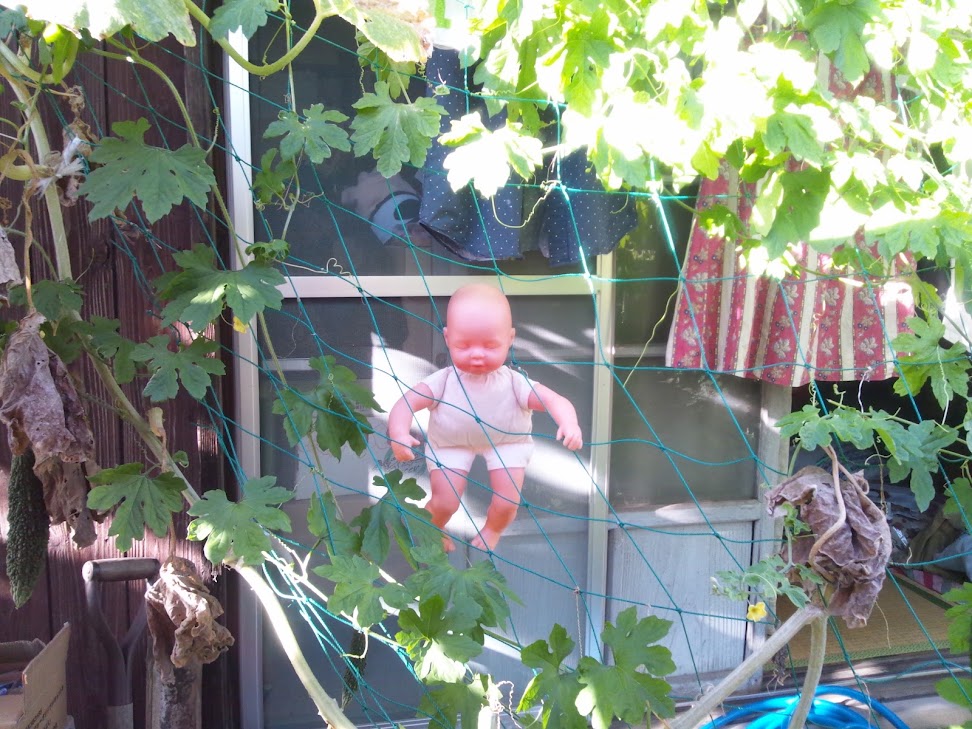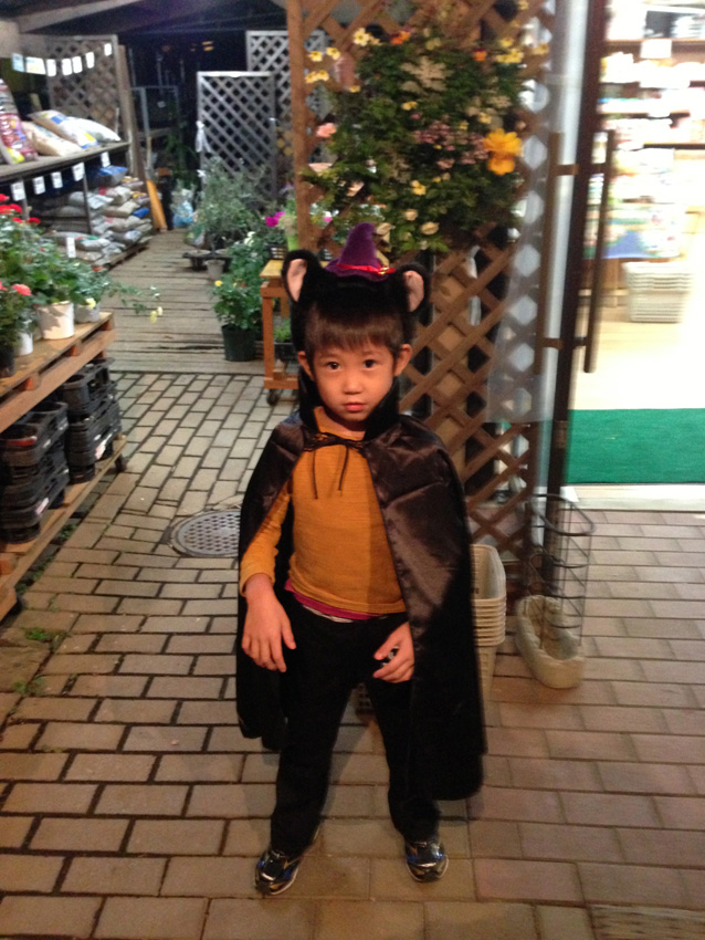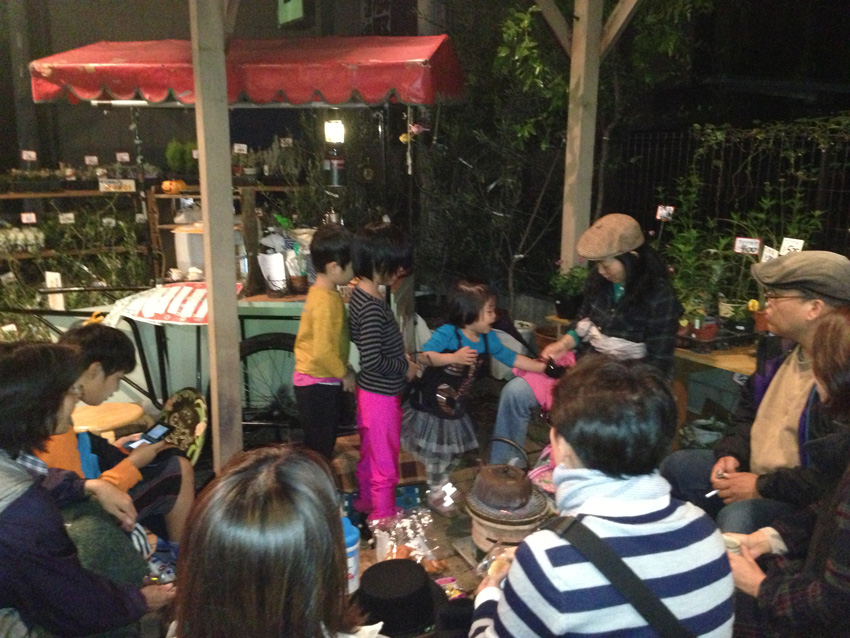 雨の平林家。テントと屋台に傘をさしました。林ライスつむちゃん♪
