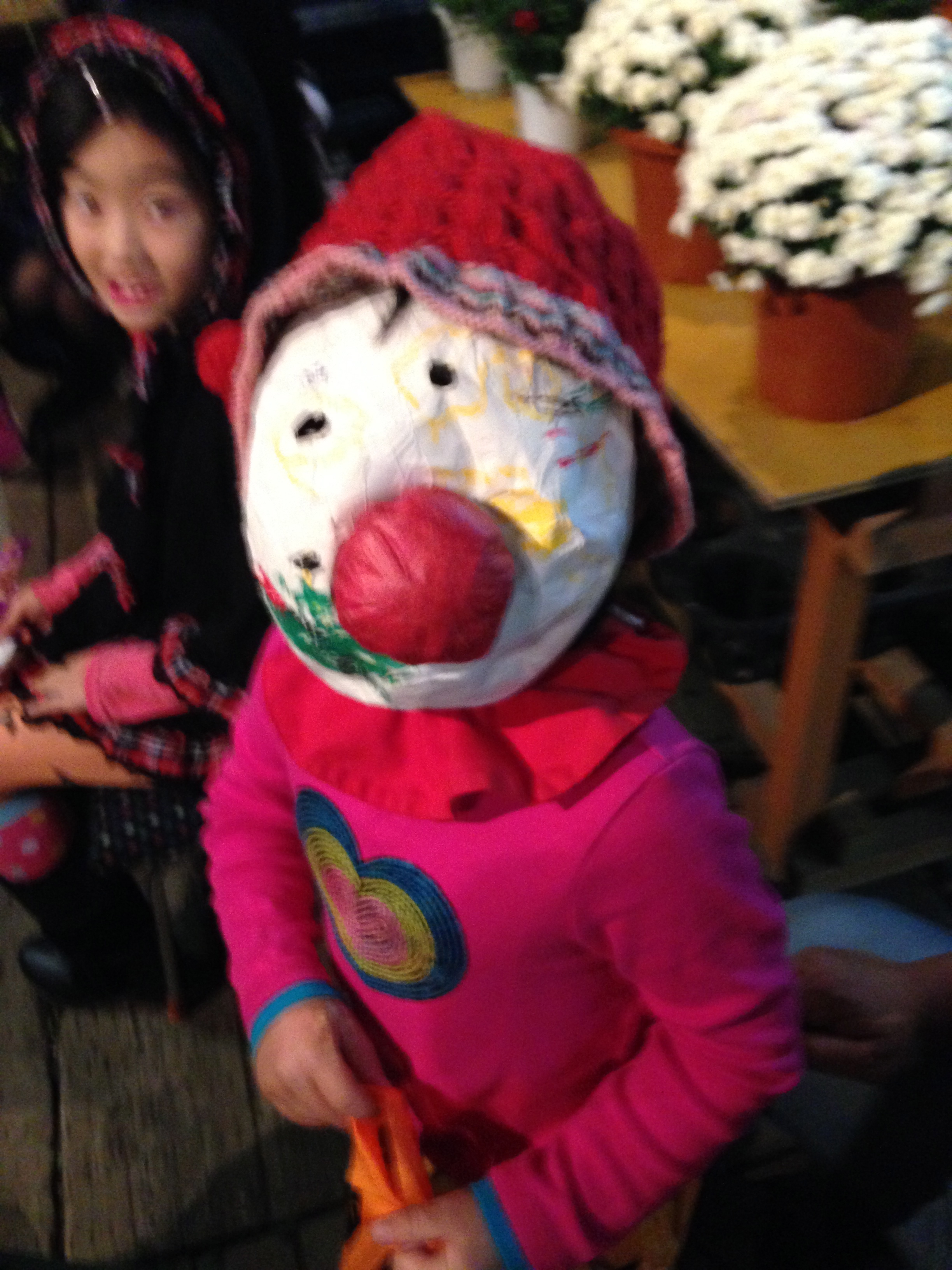 つむちゃんの自作ピエロお面、すごいっす!(私はこれでオレンジの風船持ってたらItが浮かびかなり怖い!)