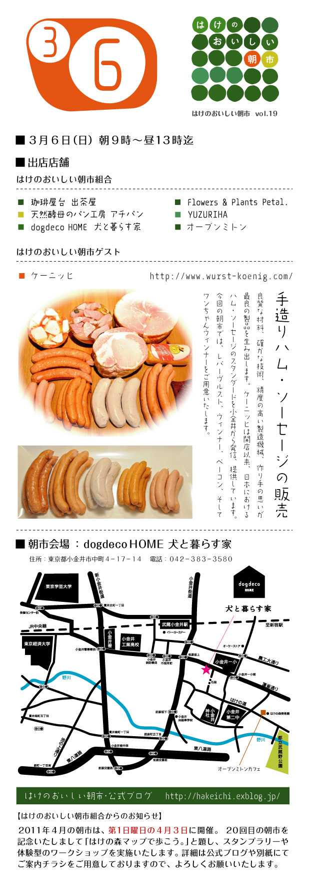 明日6日は、「はけのおいしい朝市 vol.19」に出店します。