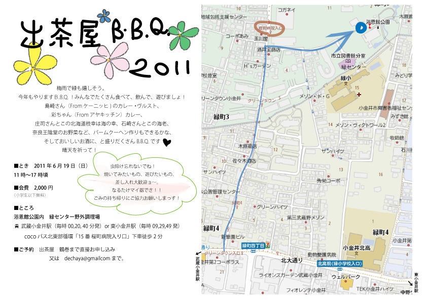 明日、19日(日)はお休みを頂き、出茶屋B B Q を開催します!