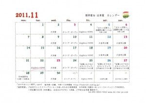 11月のカレンダー 気持ちがいいお天気で11月の始まりです。 出茶屋カレンダーを更新しました! カレンダー日々のこと 2011 年 11 月 2 日出茶屋リンクURL コメントを残す この記事を共有する → Tweet Pin It