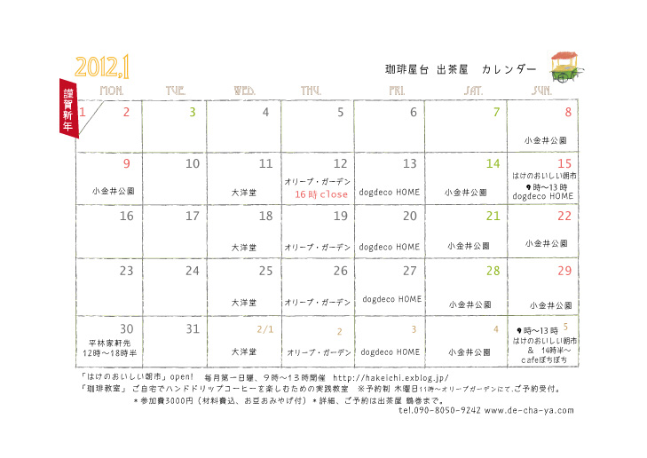 1月のカレンダー更新しました。