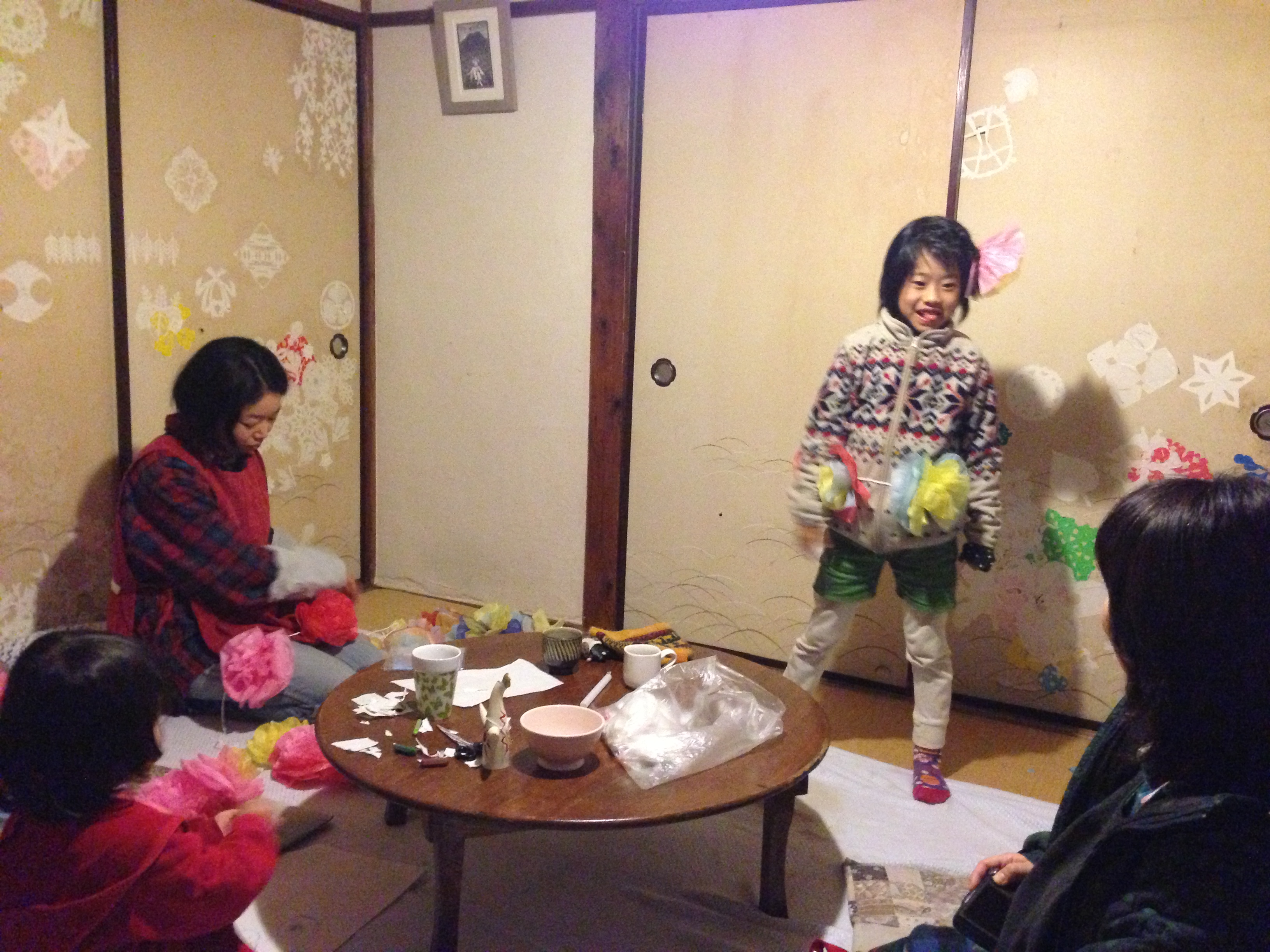 雨の日に子どもたちがたくさん作ったお花飾りやクリスマスの飾りもすこーし(笑)して、お待ちしてます♪
