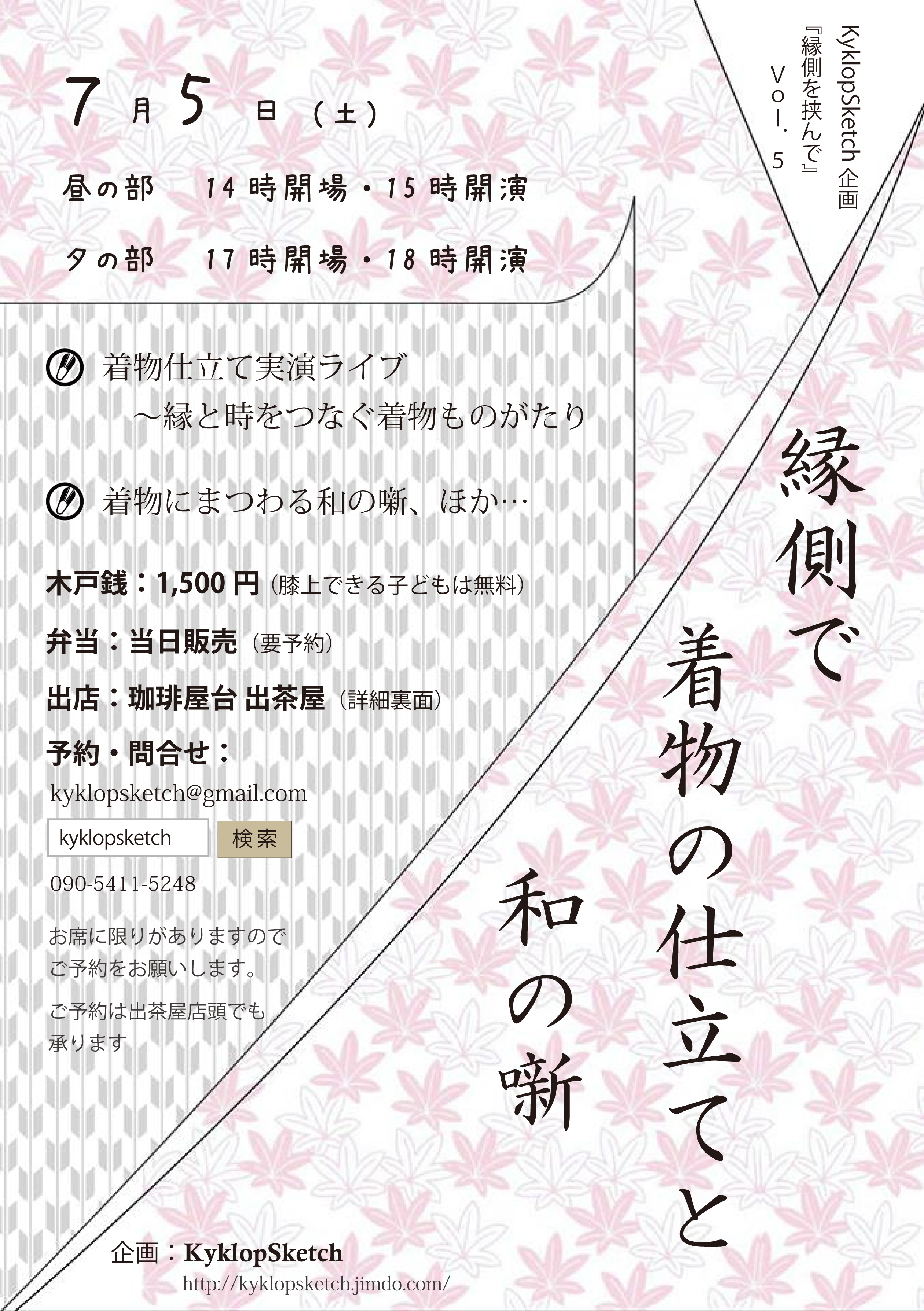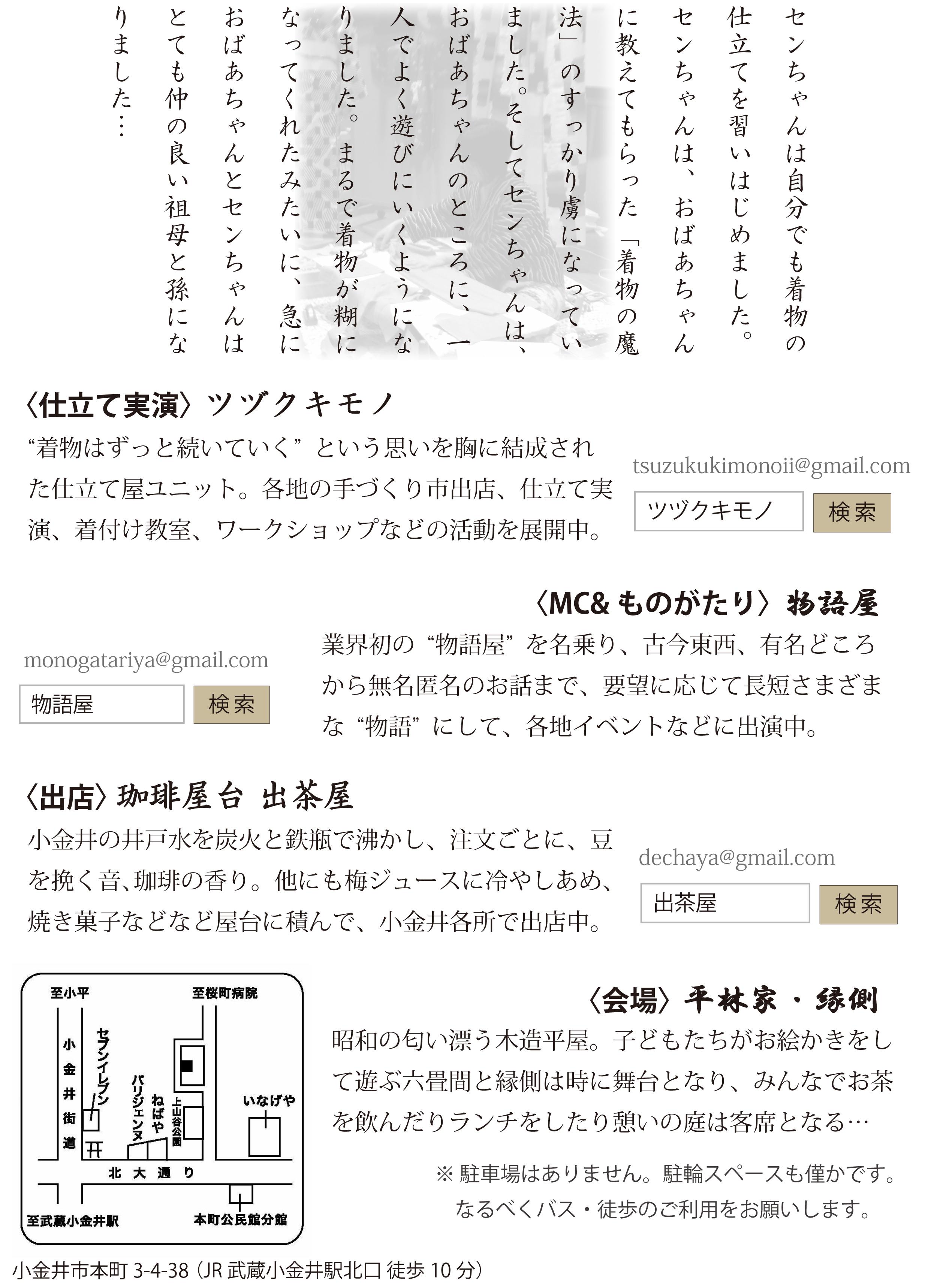 木戸銭:1500円 (膝上出来る子どもは無料)