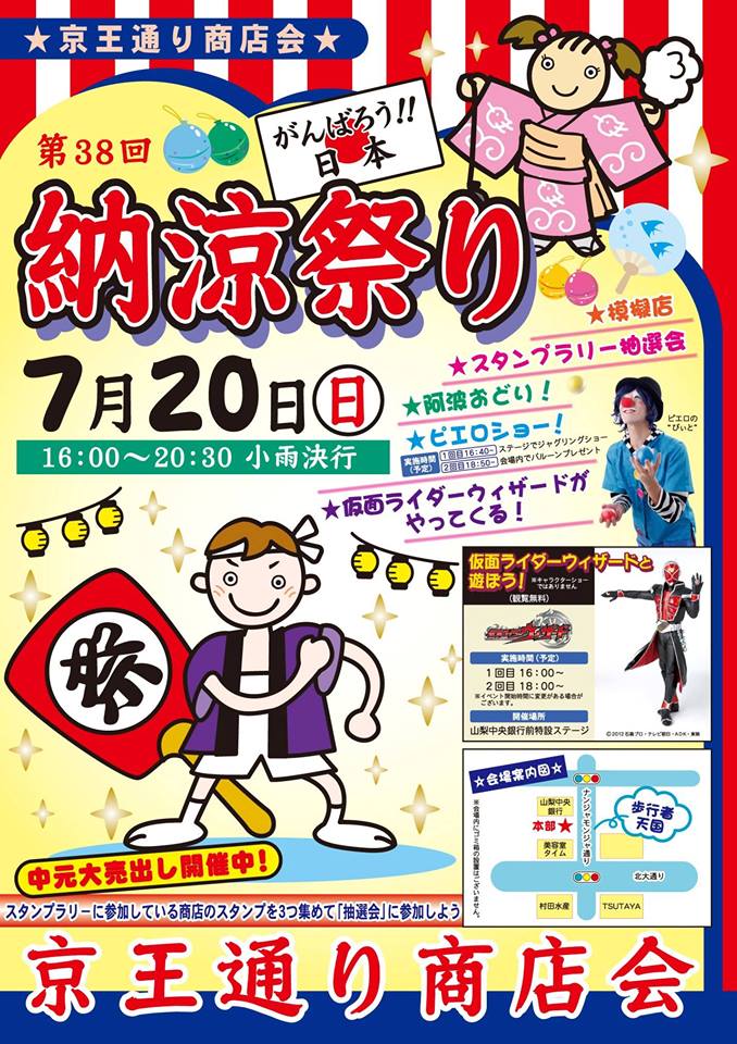 20日は京王通り商店会「納涼まつり」! 本日20日(日)は、京王通り商店会「第38回 納涼祭り」に出店します♪ 阿波おどりやピエロショー、仮面ライダーウィザードもくるそうです! お祭りの司会は、名物市や平林家イベントでもお馴染み、物語屋中川さんと、馬ことちゃんですよー! 地元のあたたかいお祭り、のんびり遊びにいらしてください♪ 京王通り商店会, 納涼祭り日々のこと 2014 年 7 月 20 日出茶屋リンクURL コメントを残す この記事を共有する → Tweet Pin It