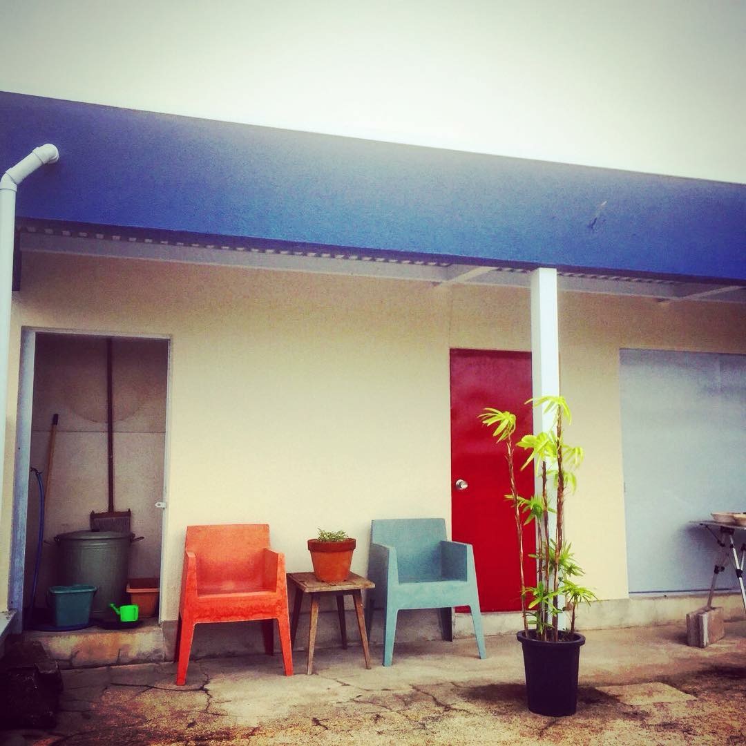 出茶屋は青いビルの横に、スプンフルさんは屋上でopen♪