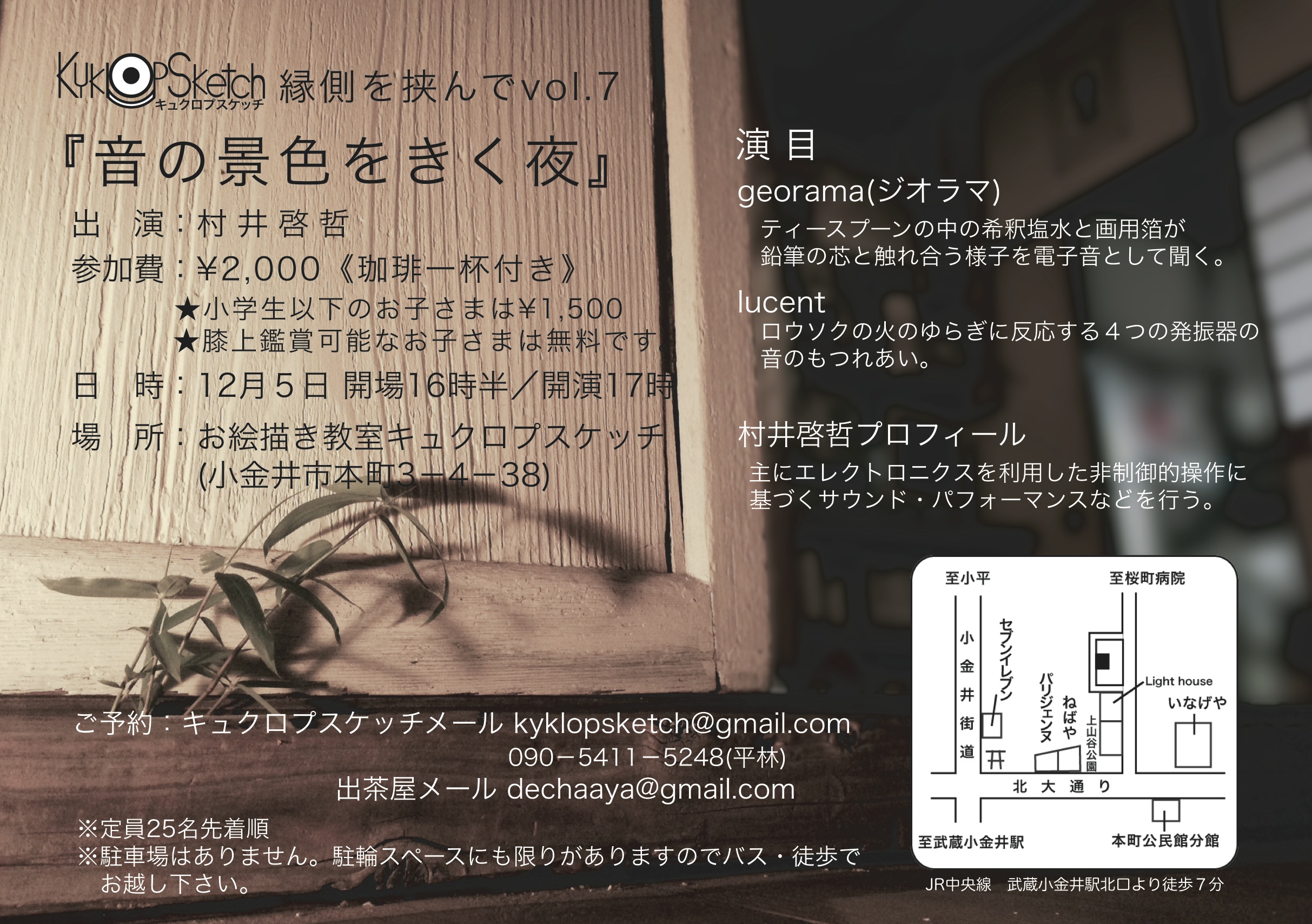 (11時~15時半頃は平林家のお庭で通常オープン。ランチのカレーご予約ください♪)『音の景色をきく夜』
