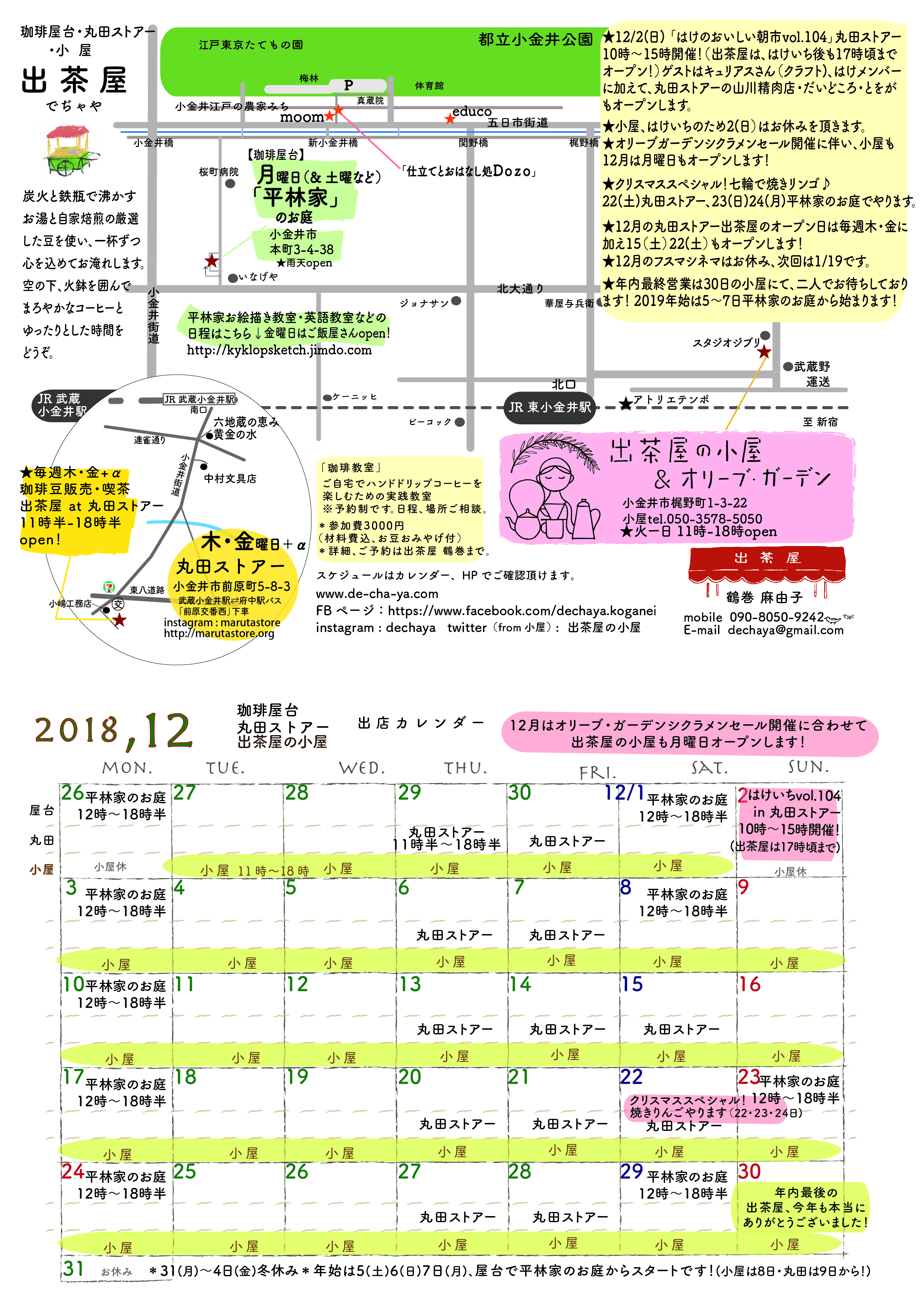 12月の出店カレンダーです! すいません、11月かっとばしまして、、12月の出店カレンダーです! 明日30日(金)は、丸田ストアーに毒蝮三太夫さんがやってきます。14時からTBSラジオ、よかったらぜひ。 日々のこと 2018 年 11 月 29 日出茶屋リンクURL コメントを残す この記事を共有する → Tweet Pin It