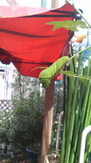 山椒が好き オリ−ブ・ガーデンさんの山椒をもりもり食べていました。 今日一日、よく眺めました。 . 他にも小さい幼虫がたくさんいて、オリ−ブガーデンさんと角を出して遊んだりした後、 山椒にしがみついていた幼虫は、はるちゃん(5歳)にもらわれていきました。 . アゲハの幼虫好きのお客さんによると、さんざん食べて大きくなって、さなぎになるのを楽しみに注意して見ていても、知らぬ内にどっかへ行ってしまって、さなぎの姿はなかなか見せてくれないそう。 はるちゃん、さなぎを見られるといいね。 オリ−ブ・ガーデン日々のこと 2010 年 7 月 9 日出茶屋リンクURL コメントを残す この記事を共有する → Tweet Pin It