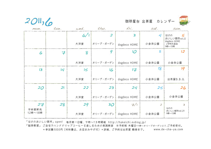 今週、来週の出店予定です。
