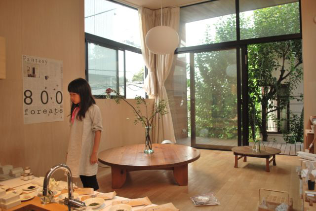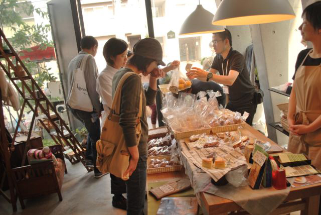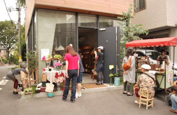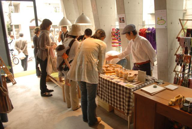 リビングには、とってもかわいくておいしいタルトの“オハコルテ”さん、リネン雑貨や器の“小さな和み”さん。リネン服の“sion”さん。“はけのおいしい朝市”コーナー。