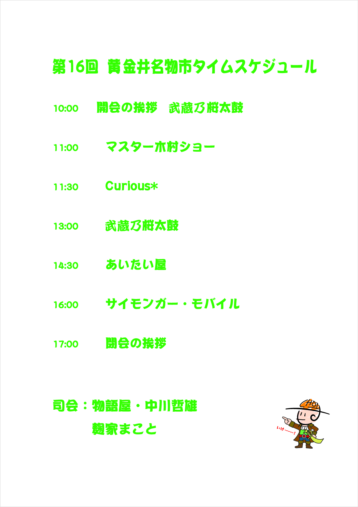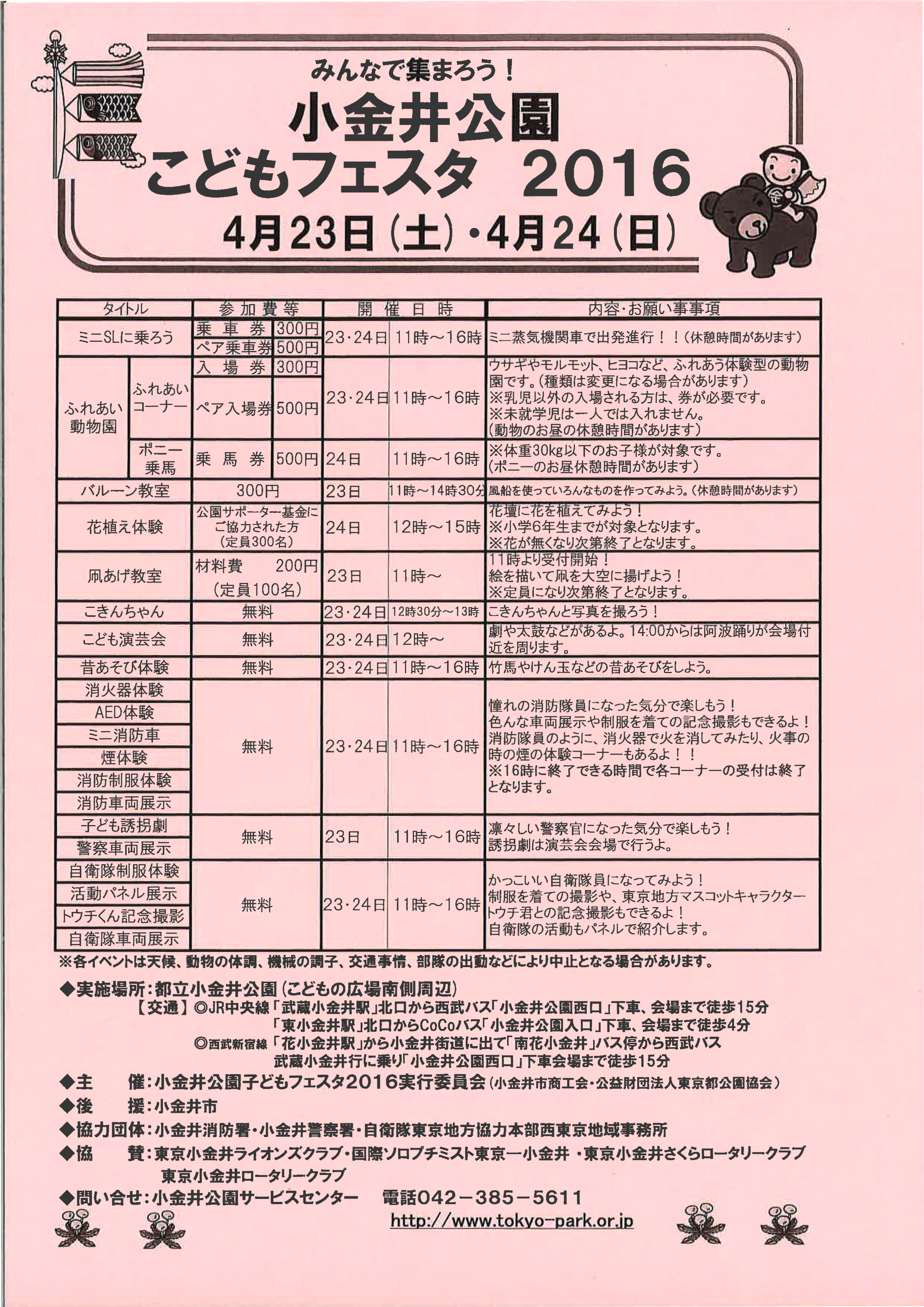 ※雨天中止。当日15時にお知らせします。