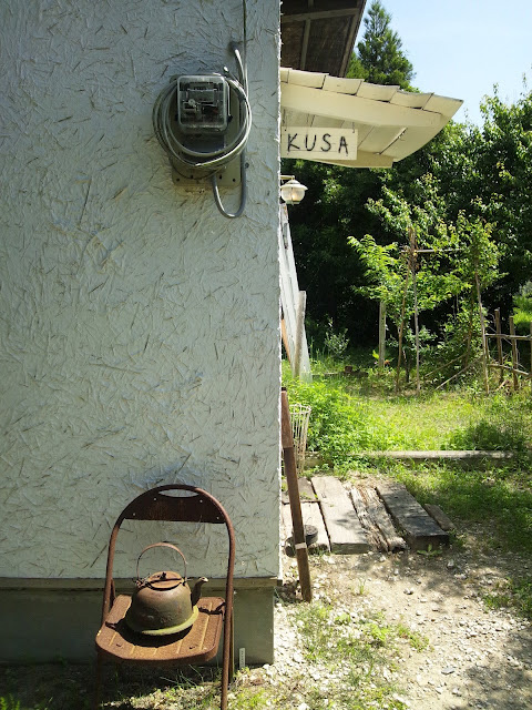 お金ない免許ない歩くのはきらいじゃない(笑)私たち。灼熱の、どこまでも平らな千葉の道を、暑い〜、やばい〜、田んぼの周り涼しい〜、なんて、てくてく歩いてたどりついたkusa喫茶さん。