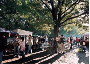 大きな柳の木?の向こう側はフリーマーケット。子どもの出店もあってかわいかった。
