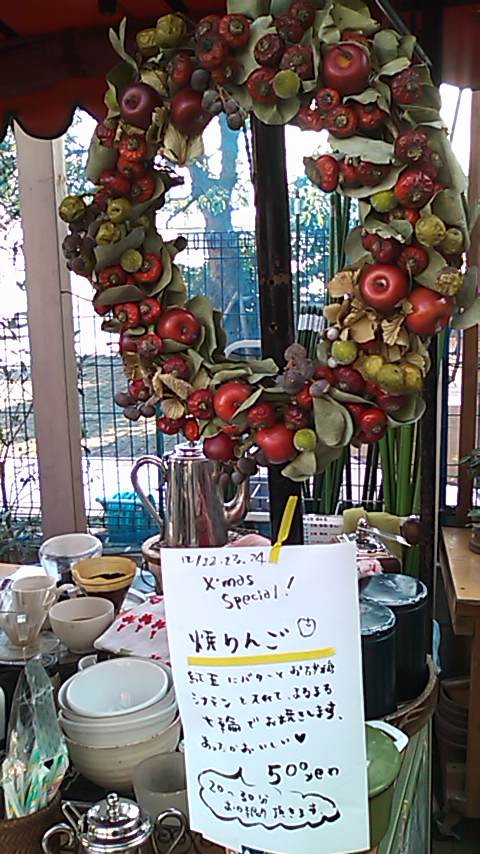 21(水)〜25(日)まで、七輪で焼く、「焼きりんご」やります〜。