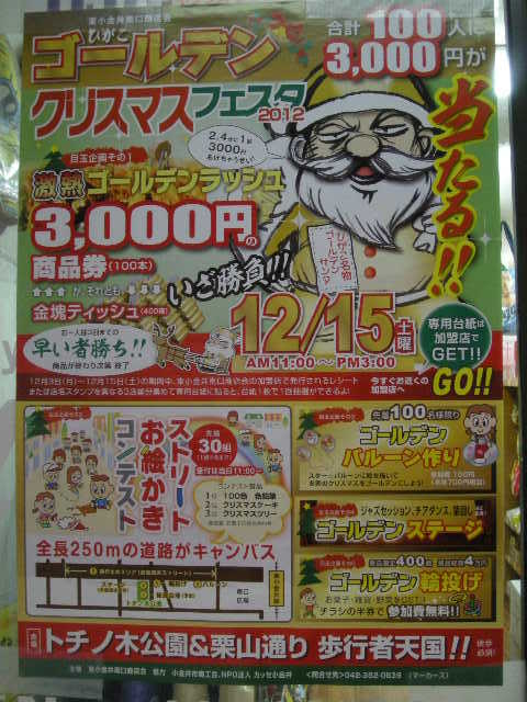 本日は、東小金井南口商店会『ひがこゴールデンクリスマスフェスタ2012』に出店します!