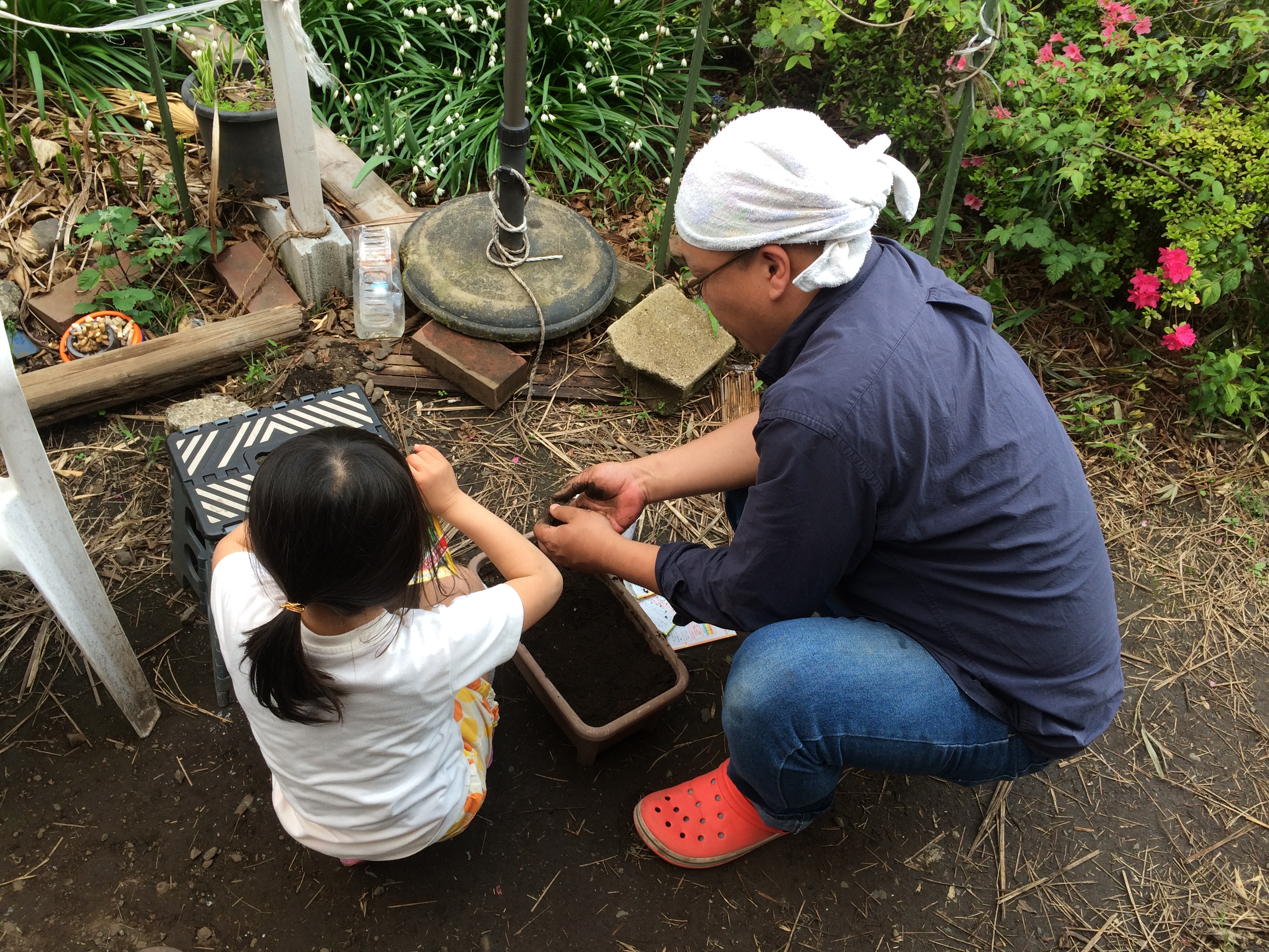 お庭の入り口に平林さん親子が植えたパクチーも育ってきましたよ♪